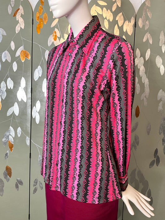 Vintage 1970s Pink and Grey Emilio Pucci for Chesa Print Disco Shirt, Medium