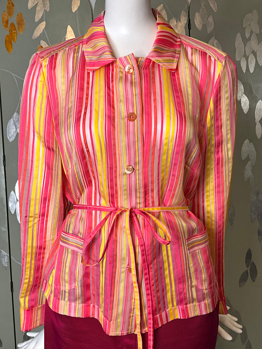 Vintage 90s/2000s Féraud Pink and Yellow Sheer Silk Stripe Jacket, Large