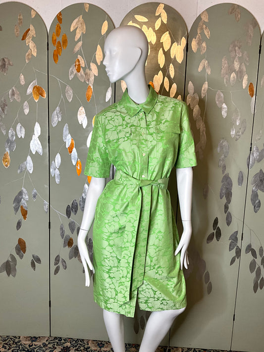 Vintage 90s/00s Green Féraud Short Sleeve Safari Shirt Dress with Belt, Large