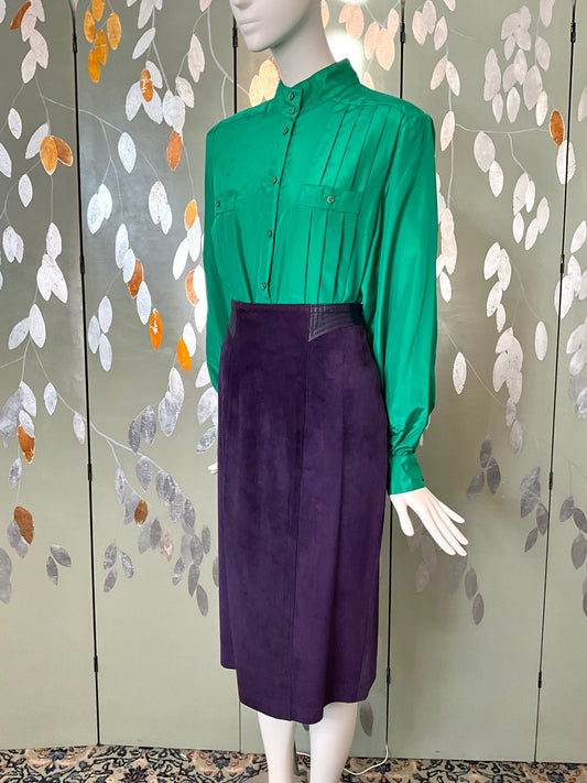 Vintage 1980s Purple Suede Pencil Skirt, S-M