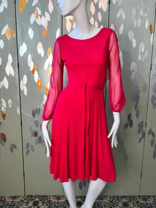 Vintage 1970s Jean Muir Pink Jersey Bishop Sleeve Dress, Small