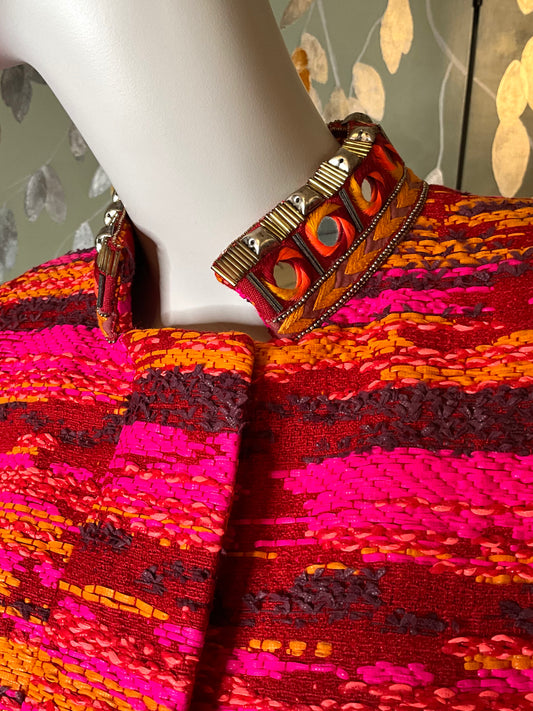 2013 Matthew Williamson Red Pink Orange Embellished Woven Jacket, Medium