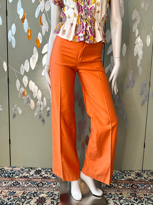 Vintage 1970s/80s Orange Polycotton Mid Rise Wide Leg Flared Pants, XS