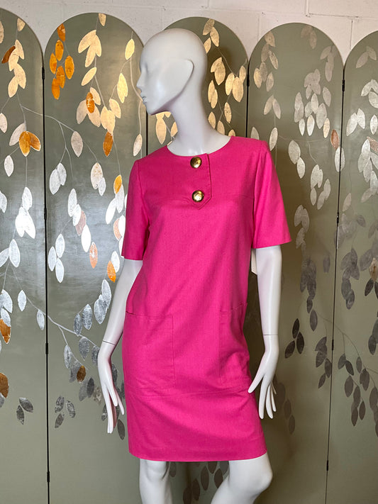 Vintage 1980s Pink Silk Guy Laroche Short Sleeve Shift Dress, Medium