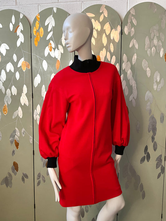 Vintage 1980s Red Wool Guy Laroche Athleisure Zip-Up Sweater Dress, Medium