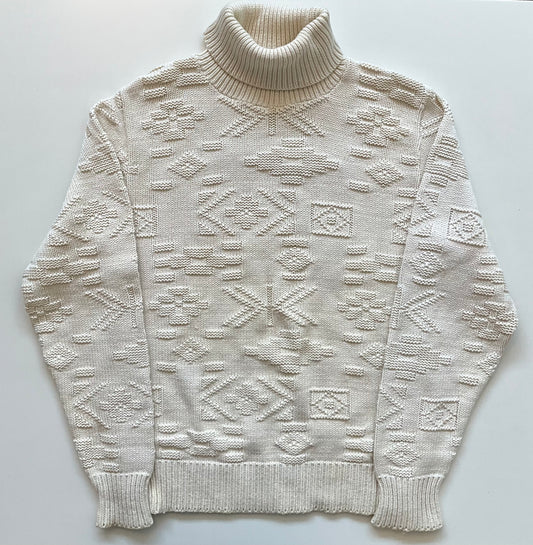 Vintage 1990s Woolrich Cream Cotton Knit Turtleneck Sweater, M-L