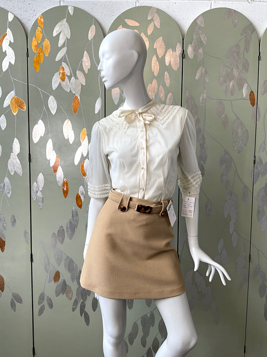 Vintage 90s Does 60s Camel Mini Skirt, Small