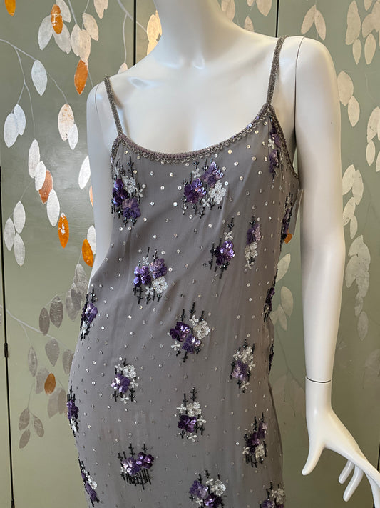 Vintage 1990s Grey Silk Sequinned Evening Dress, Medium