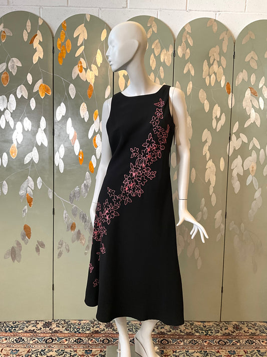 Vintage 1990s Black & Pink Floral Embroidery Dress, B40"