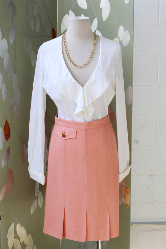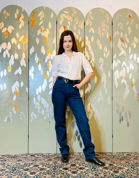 Vintage 1980s White Linen Button Up Collared Blouse, Medium