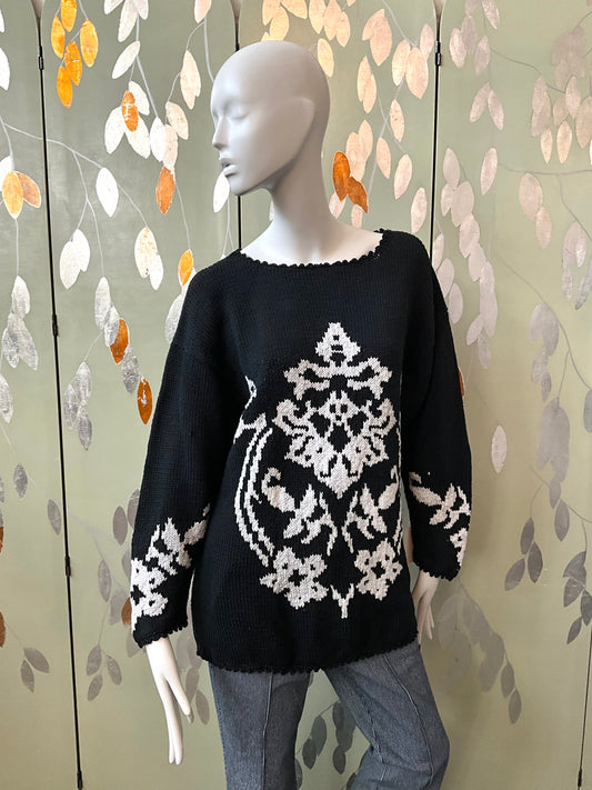 Vintage 1990s Black and White Cotton Koochee Sweater, XL