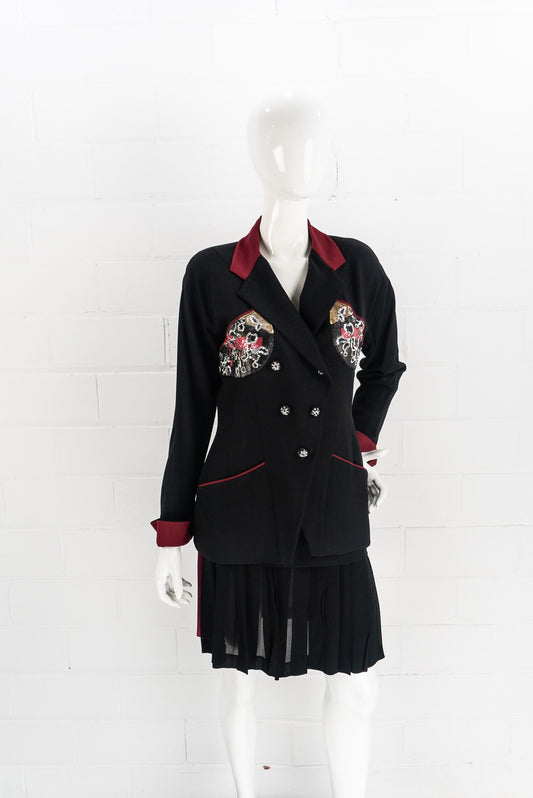 Vintage 1990s Karl Lagerfeld Black & Red Sequin Skirt Suit, Small