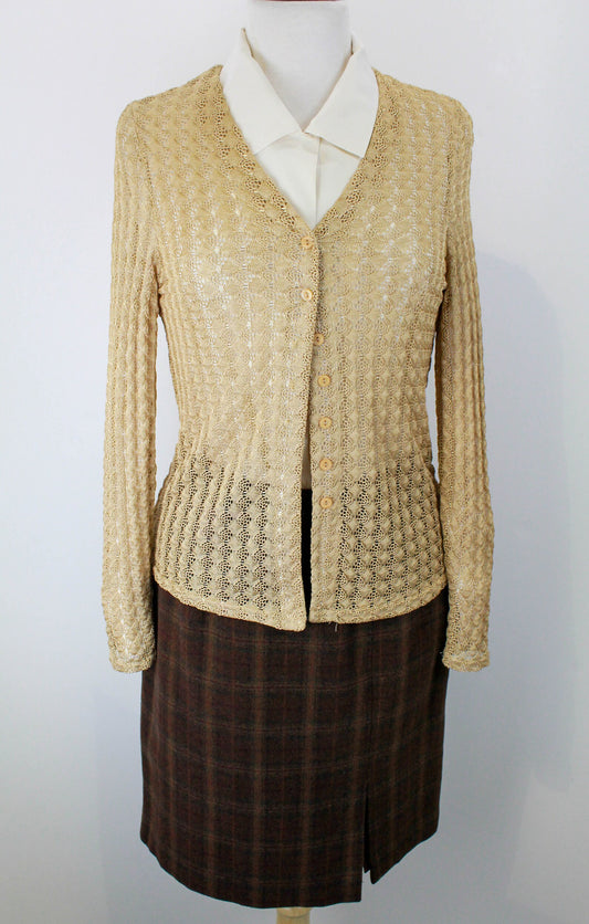 Vintage 1990s Dorothy Perkins Golden Crochet Cardigan, XS