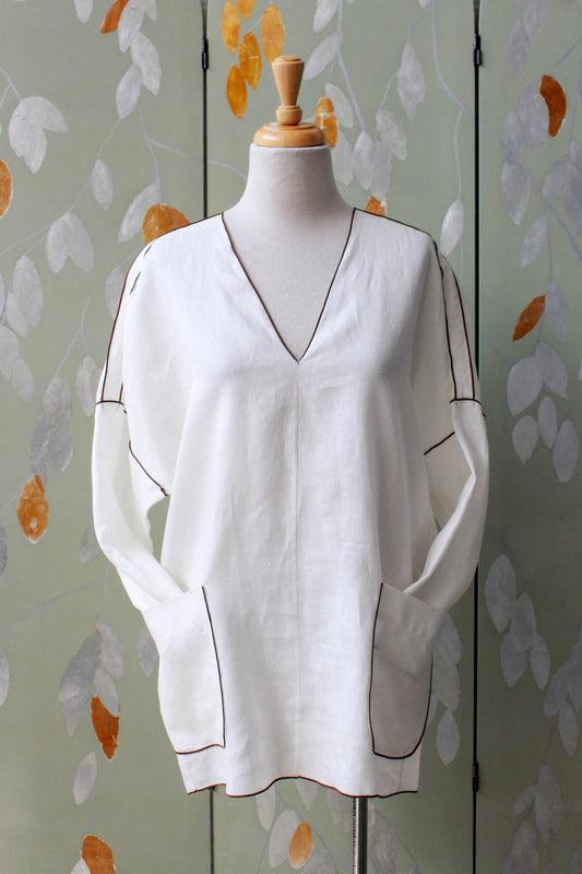 Cream Linen Minimalist Tunic, Made in Italy, Large