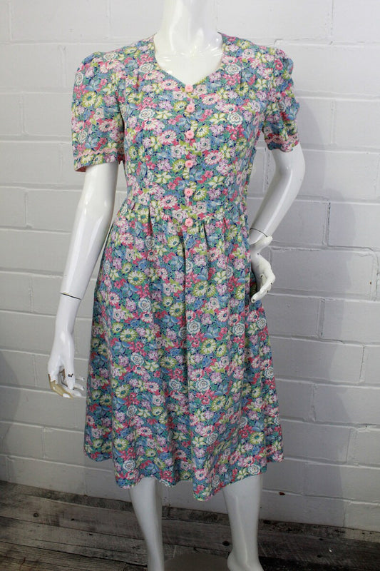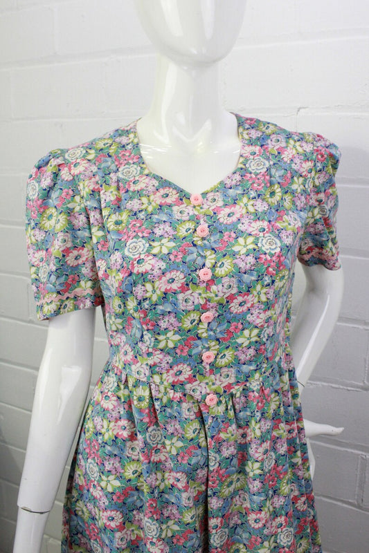 Vintage 1980s Red Short Sleeve Princess Seam Dress, Medium