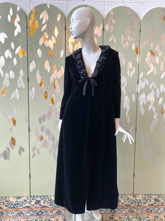Vintage 1990s Oscar De La Renta Black Velvet Bedazzled Long Sleeve Evening Dress, S/M