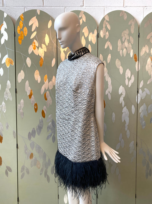 Vintage 1960s Black Beaded Brocade Cocktail Dress, Small