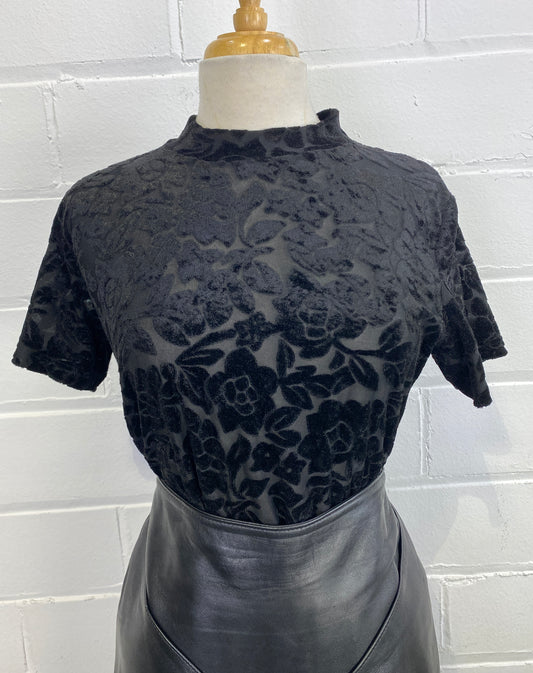 Vintage 1960s Black Lace Short Sleeve Top, Small