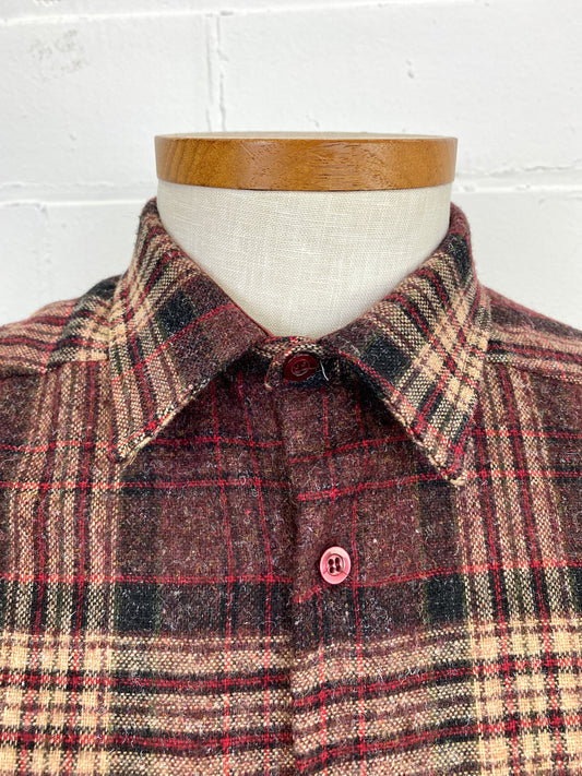 Vintage 1980s Issey Miyake Men's Blue Check Cotton Button-Up Shirt, Large