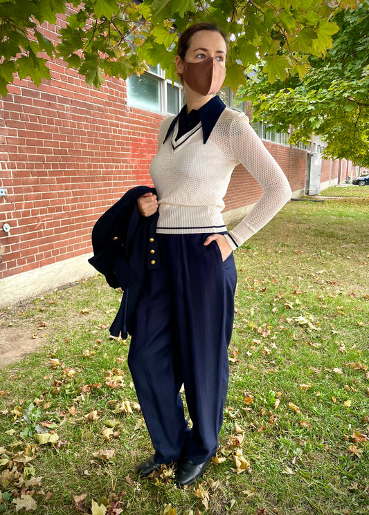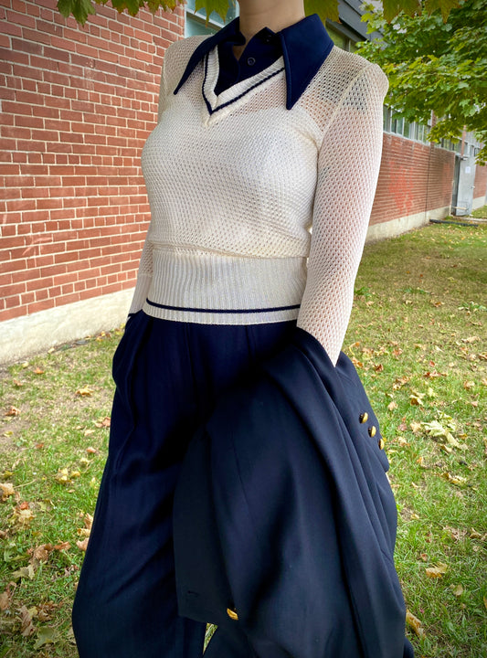 Vintage 1970s Navy Cotton 3 Piece Pant Suit, XS/S