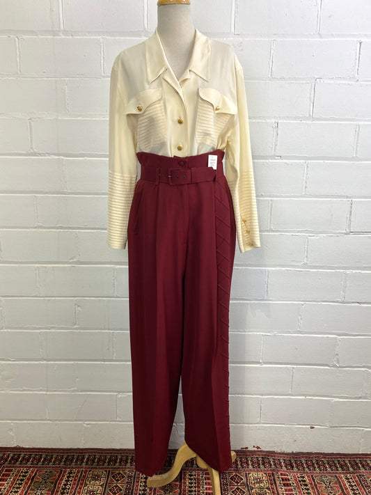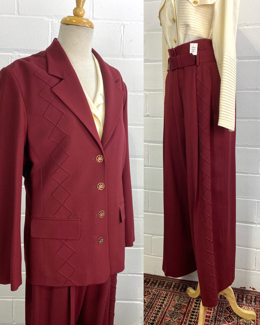Vintage 1980s Sophie Sitbon Burgundy Wool Pant Suit, Tapered Leg, W29"