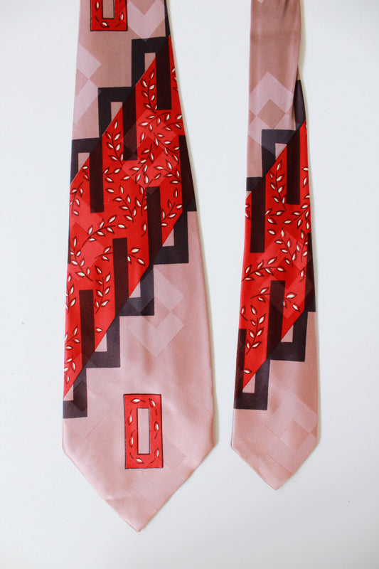Vintage 1950s Abstract Rayon Tie in Pale Rose Pink/Red/Black, PILGRIM Cravats