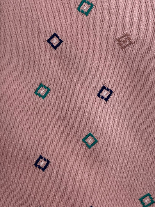 80s Deadstock Necktie, Men's Vintage Pink Geometric Square Pattern Tie, NOS