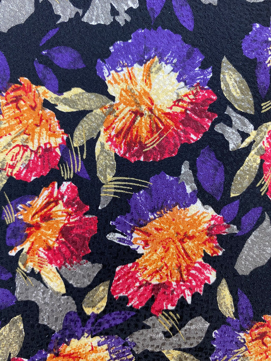 90s Deadstock Silk Necktie, Men's Vintage Black/ Orange/ Pink Floral Pattern Tie, NOS