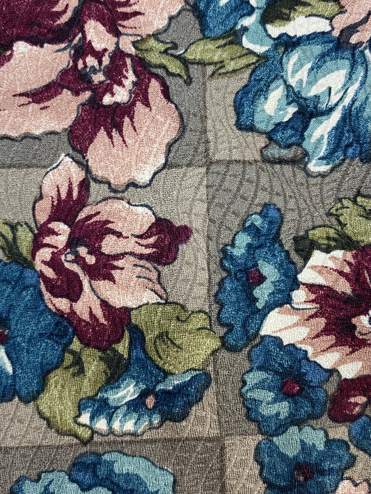 90s Deadstock Silk Necktie, Men's Vintage Taupe/ Blue/ Pink Floral Pattern Tie, NOS