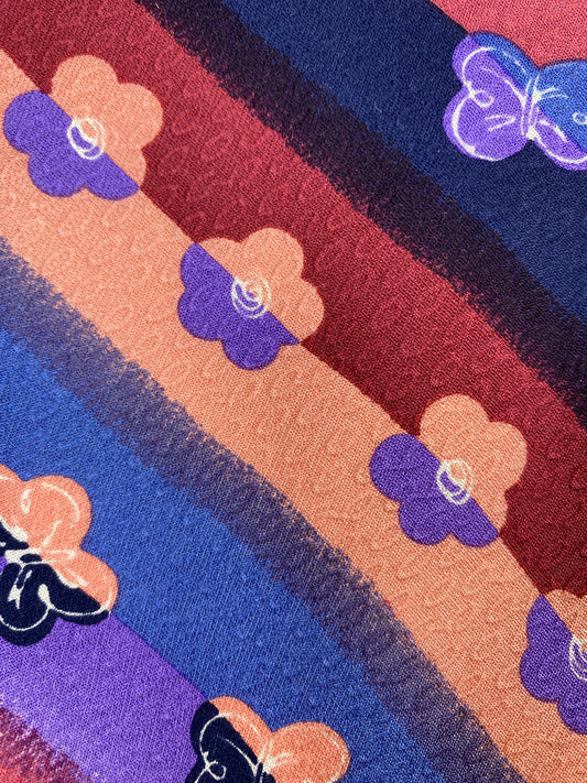 90s Deadstock Silk Necktie, Men's Vintage Pink/ Purple/ Blue Floral Butterfly Stripe Pattern Tie, NOS