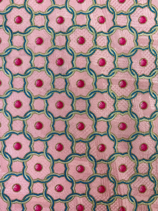 90s Deadstock Silk Necktie, Men's Vintage Pink Quatrefoil Link Pattern Tie, NOS