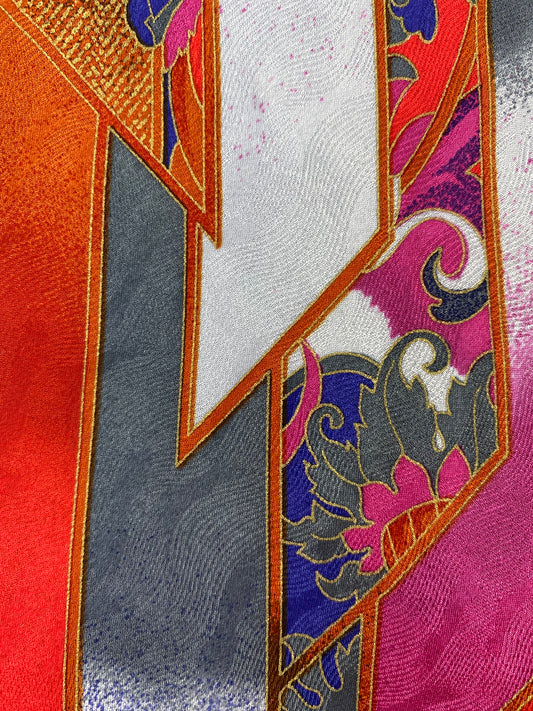 90s Deadstock Silk Necktie, Men's Vintage Purple/ Orange/ Pink Floral Pattern Tie, NOS