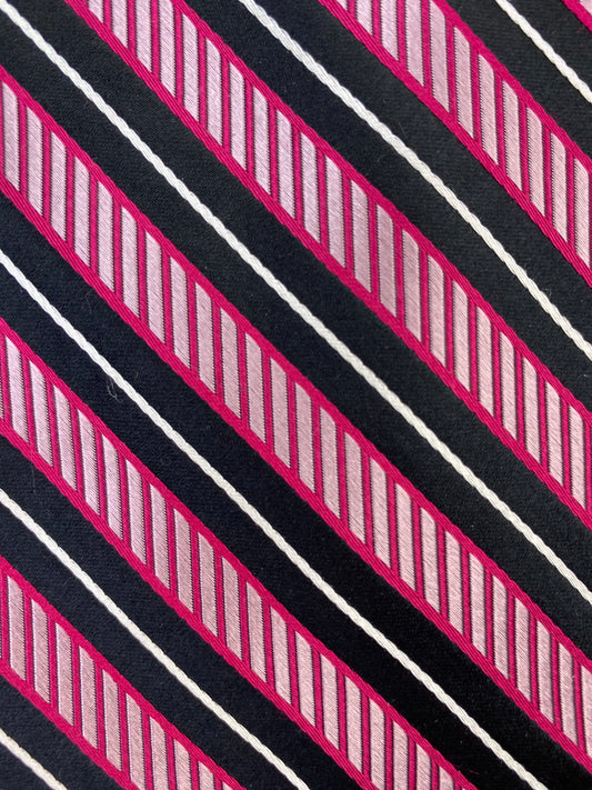 90s Deadstock Silk Necktie, Men's Vintage Pink/ Black Diagonal Stripe Pattern Tie, NOS