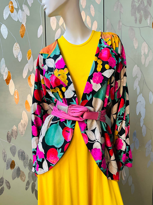 Vintage 1980s Ungaro Fruit Print Silk Blazer, XL