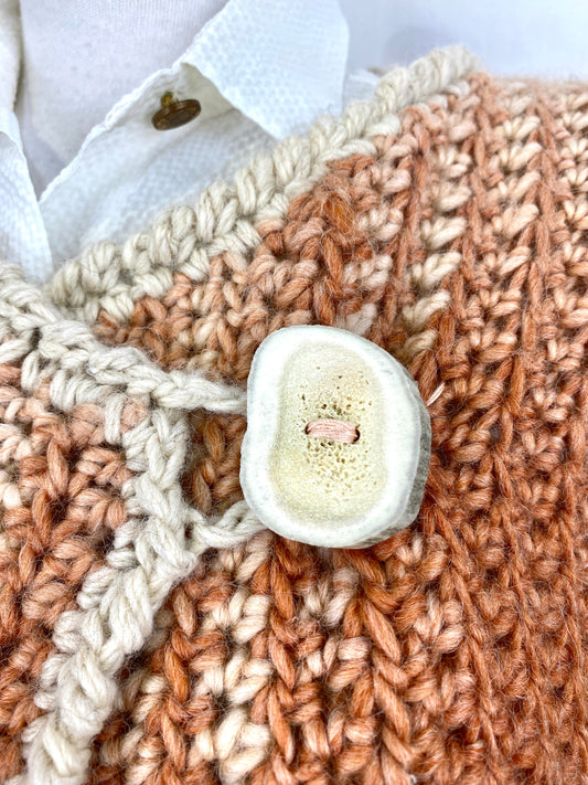 Vintage Handknit Chunky Orange Variegate Cardigan with Wood Button, Large