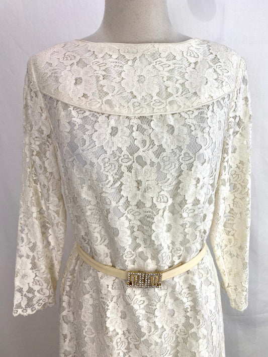 Vintage 1980s White Lace Dress, Utah Tailoring, Large