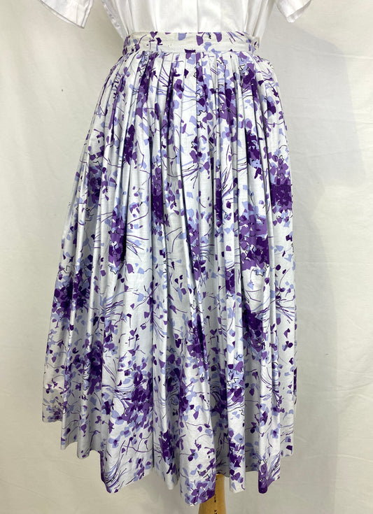 Vintage 1950s Purple Cotton Print Skirt, Alex Colman, XS
