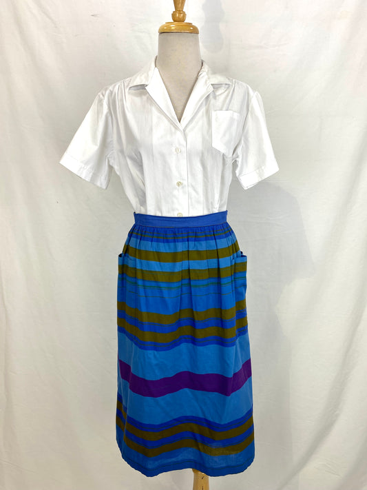 Vintage 1980s Cotton Blue/ Brown Stripe Summer Skirt, Small