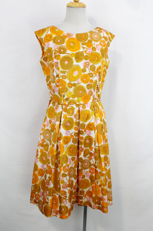 Vintage 1950s Orange/Pink Abstract Floral Party Dress, Medium