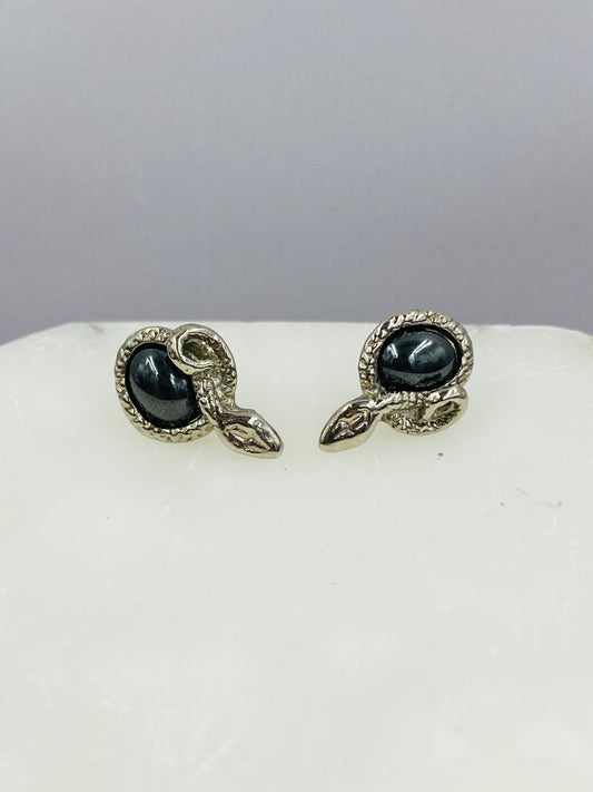 Silver Snake Pierced Hematite Earrings
