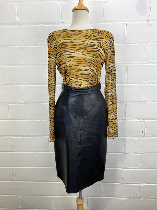 Vintage 1980s Black Leather High-Waist Skirt, W27"