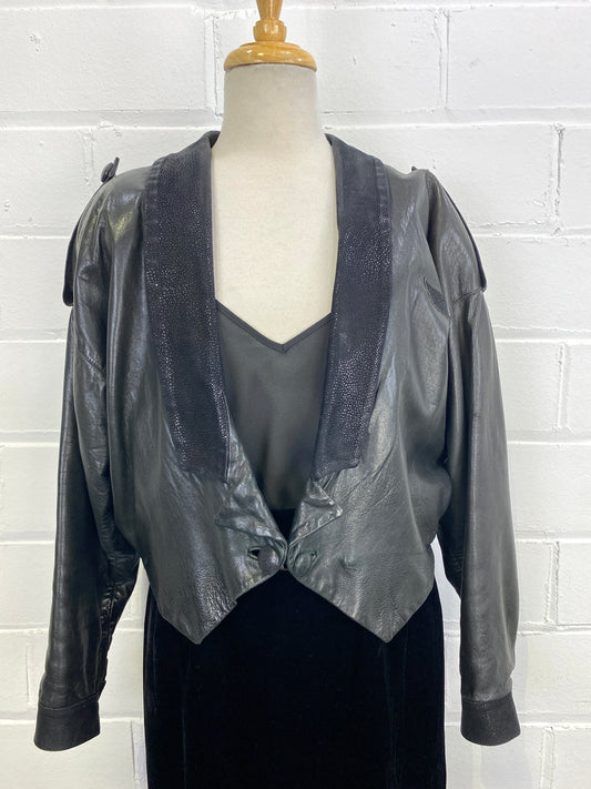 Vintage 1980s Black Leather Lee Buchanan Cropped Jacket