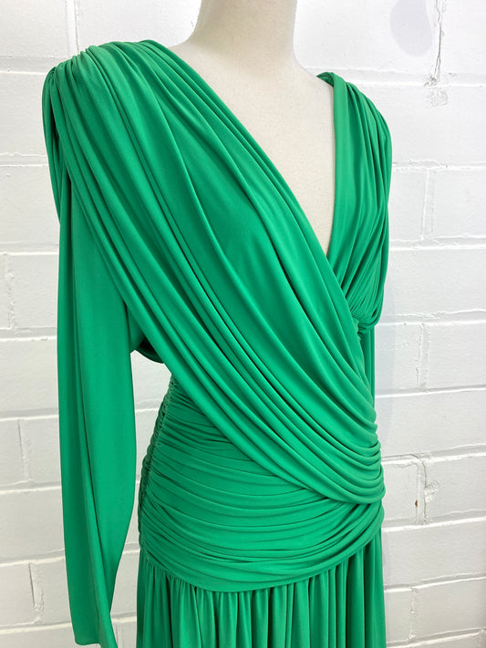 Vintage 1980s Green Wool Austrian Cardigan, Puff Sleeves, Deadstock, Medium