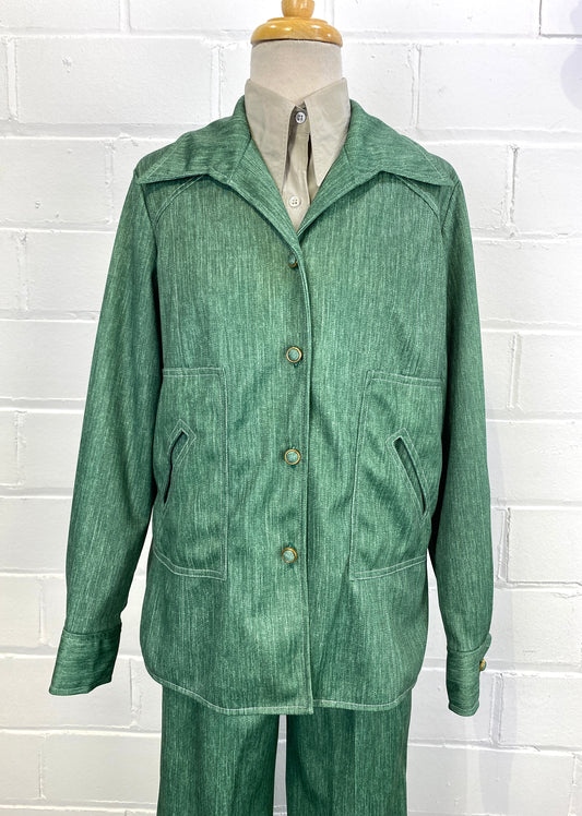 Vintage 1970s Arbe Green Knit Skirt and Top Set, Medium