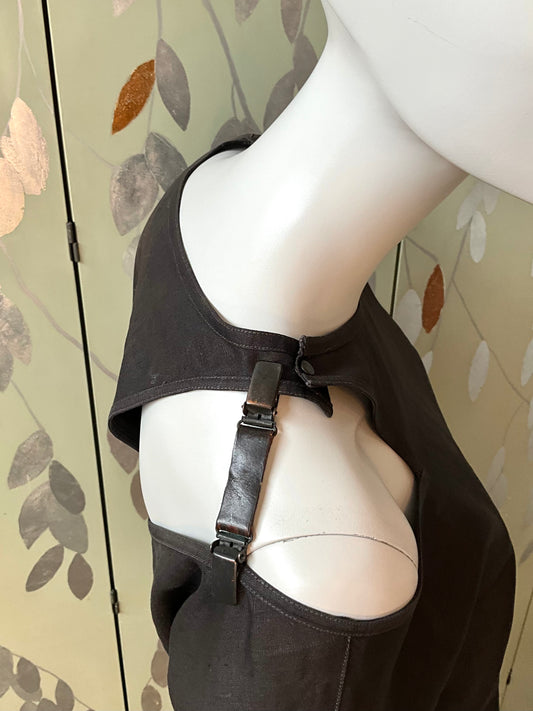 Vintage 1990s Black Linen Short Sleeve Cut-Out Buckle Top, Medium