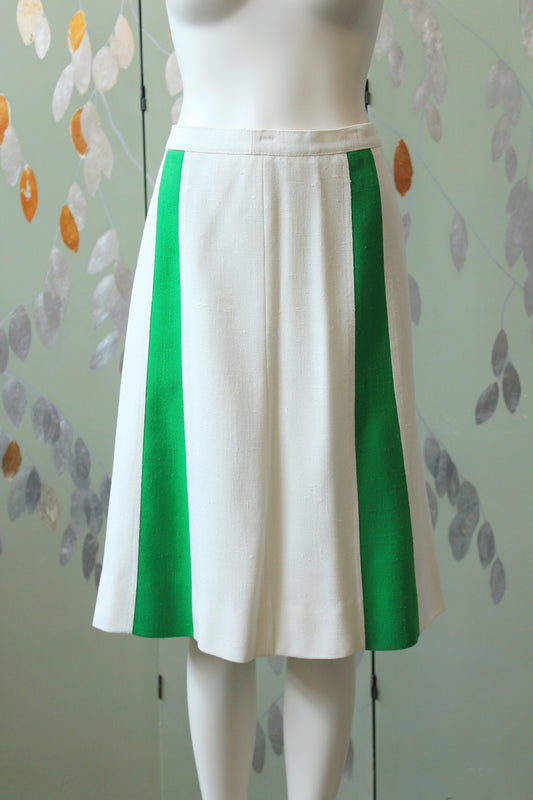 1970s/80s Sporty Anne Klein White/Green Skirt And Jacket 2 PC Matching Set, Large