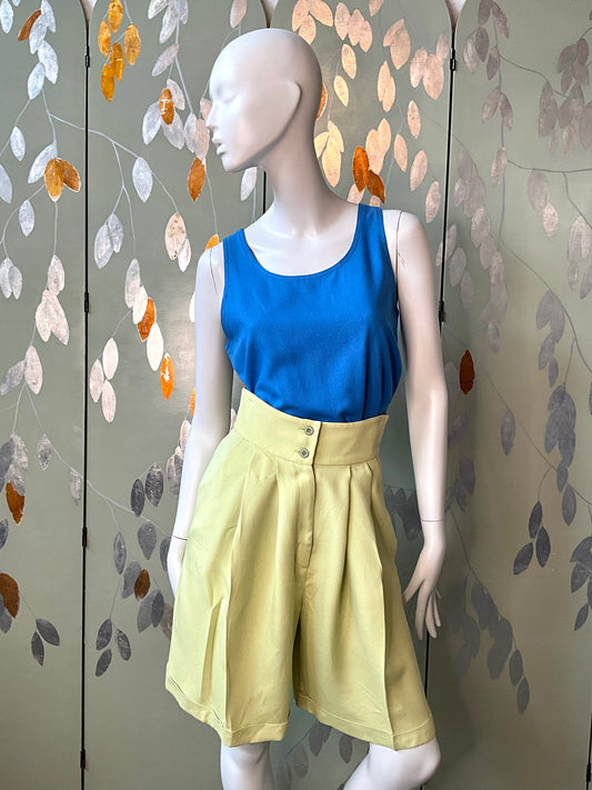 Vintage 1980s Sunny Choi Pale Green Wide Leg Pleated Bermuda Shorts, Small