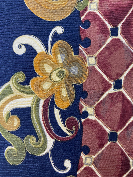 90s Deadstock Silk Necktie, Men's Vintage Navy/ Wine/ Gold Print Tie, NOS