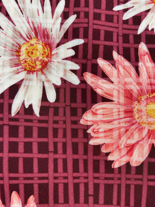 90s Deadstock Silk Necktie, Men's Vintage Wine/ Pink/ White Floral Daisy Pattern Tie, NOS