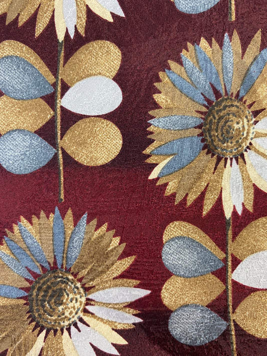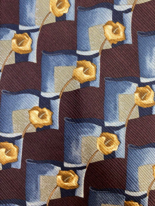 90s Deadstock Silk Necktie, Men's Vintage Wine/ Blue Abstract Floral Pattern Tie, NOS